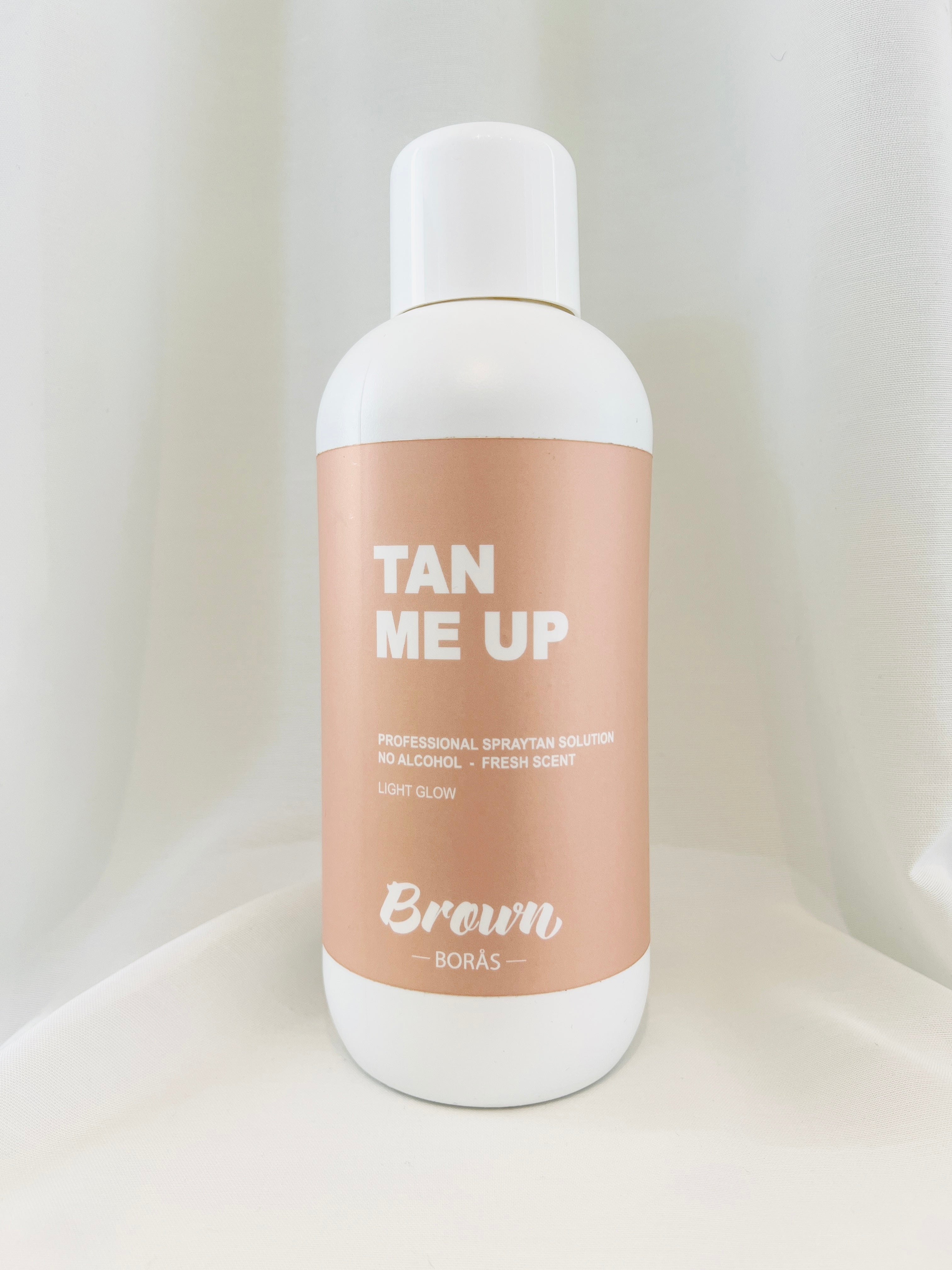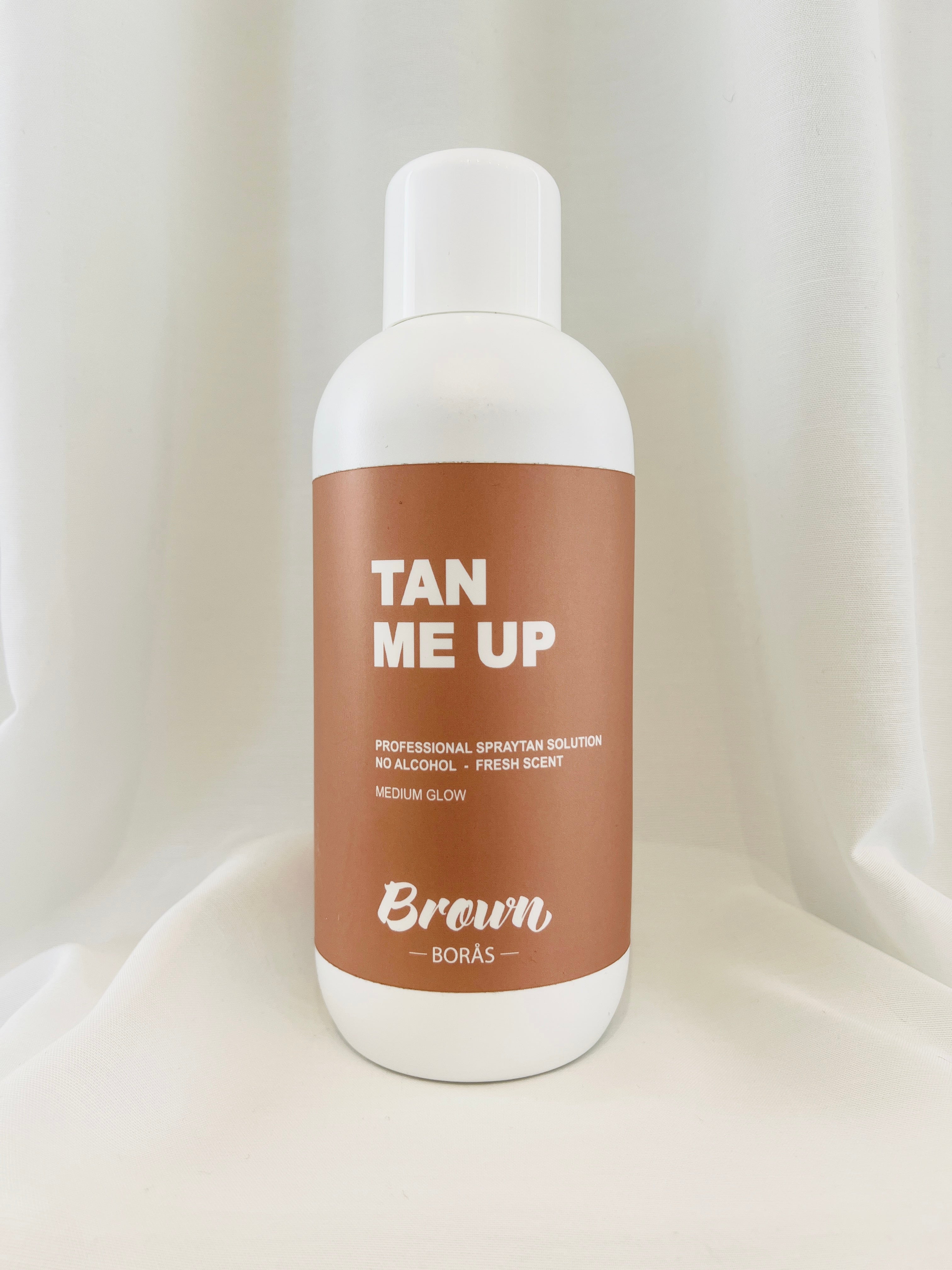 Tan Me Up är vår egen spraytanvätska, framtagen av Rebecka på BROWN och används idag av salonger i hela Sverige. Den fungerar perfekt i din Tanrevel-maskin – och resultatet talar för sig själv.
